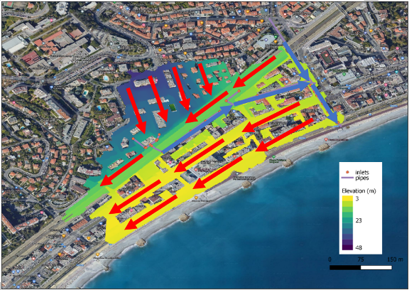 本計畫研究團隊提出一創新快速淹水模式,在不需要高速電腦與平行運算等強大計算資源之條件下,結合細胞自動機(Cellular Automata)與數值地形(Digital Elevation Model, DEM)之優點,開發一命名為Hybrid Inundation Model(HIM)之快速運算淹水模式。本模式具有可即時運算、短時間內提供具有時間變化之淹水範圍,並且數值穩定等優點。本團隊已初步完成模式之開發,並採用英國最常驗證二維淹水模式正確性之EA benchmark test cases進行測試,結果顯示HIM模式結果與其他模式結果比較,已有初步參考價值。